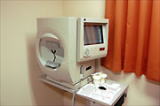 | 眼底写真に画面上で図示コメントを加えて説明 | 視野検査計 (緑内障早期発見) |